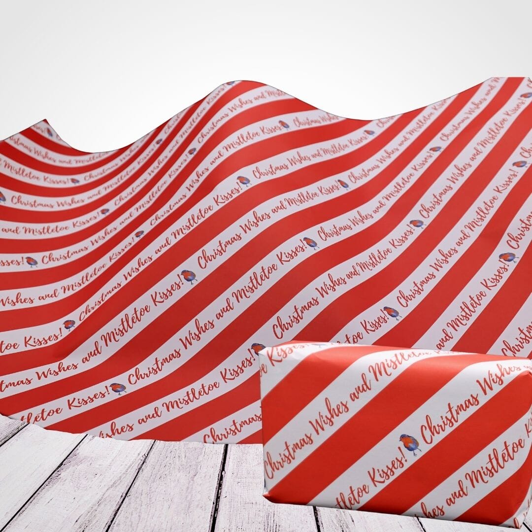 This beautiful red and white Christmas wrapping paper featuring Rufus the robin is perfect to wrap your festive gifts with. With text saying “Christmas wishes and mistletoe kisses” Suitable for people of all ages and genders.
